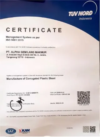 Supported by a robust quality management system, proven industry experience, and advanced technical expertise, PT Alpha Gemilang Makmur is fully equipped to meet customer-specific requirements for corrugated plastic sheets. By leveraging environmentally responsible technologies, PT Alpha Gemilang Makmur actively addresses environmental challenges while contributing to a sustainable future that delivers long-term social and economic value.
